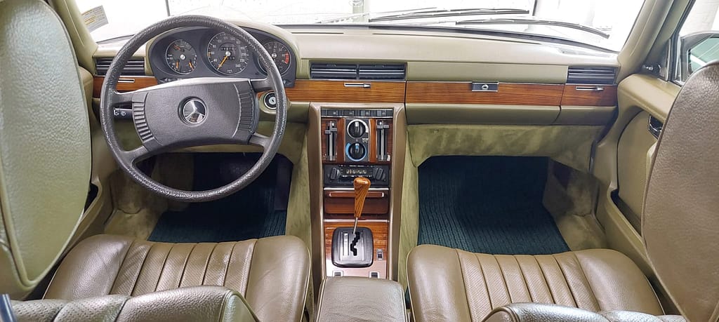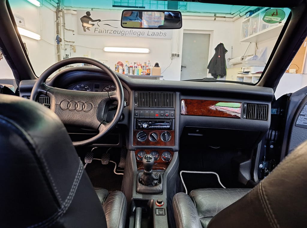 Staube den Innenraum regelmäßig ab und sauge ihn vorsichtig aus. Nutze für Lederreinigung und Pflege sowie für die Holzteile spezielle Produkte, die für diese Materialien geeignet sind.